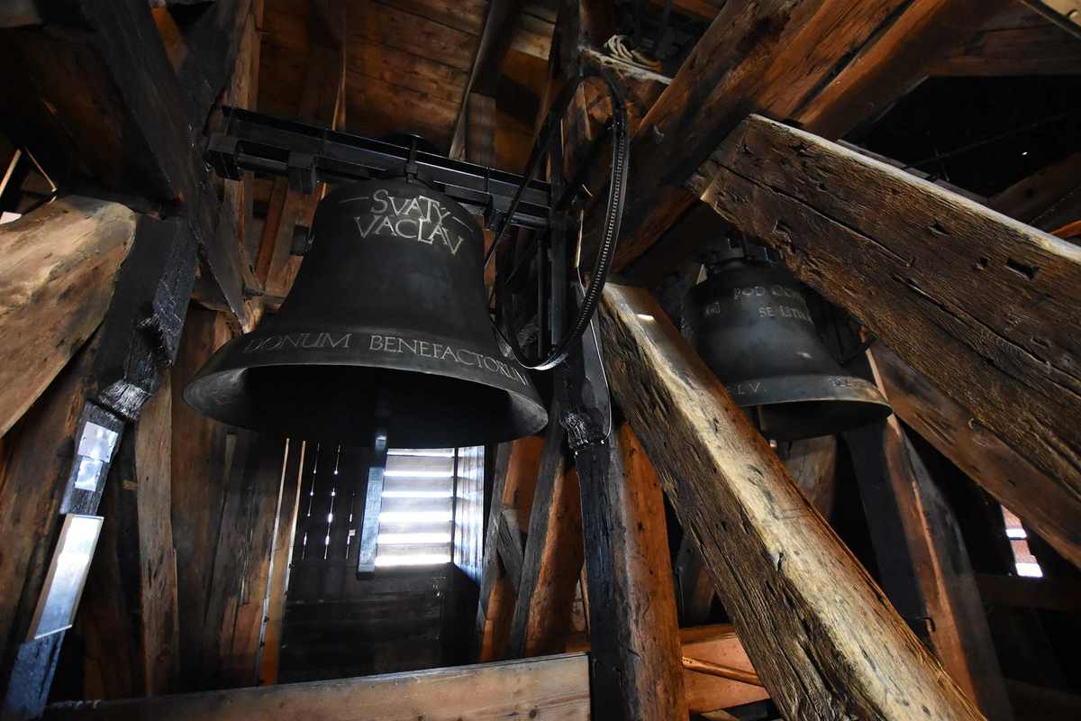 Dále procházejí kolem čtyř zvonů – svatý Cyril a Metoděj, svatý Václav, Panna Marie a Mistr Jan Hus – o celkové hmotnosti 3,3 tuny. Zvony byly odlity v letech 1991–1992 v renomované zvonařské dílně Marie Tomáškové-Dytrychové v Brodku u Přerova.