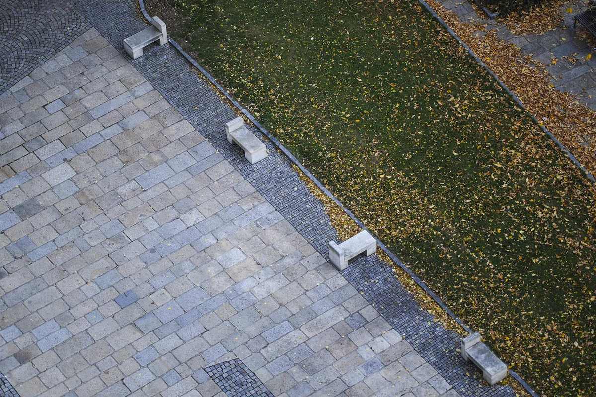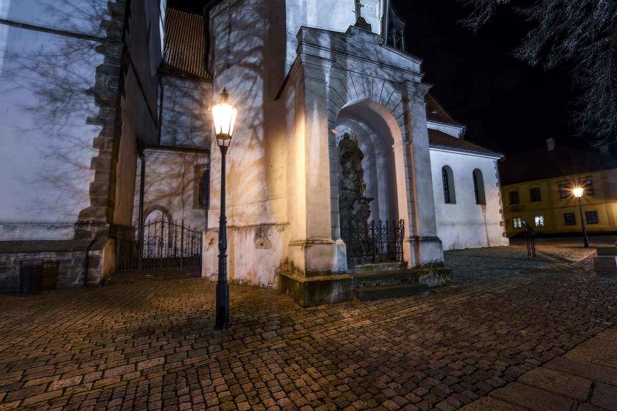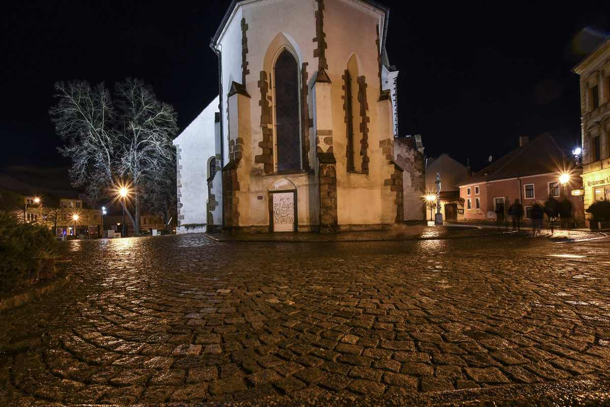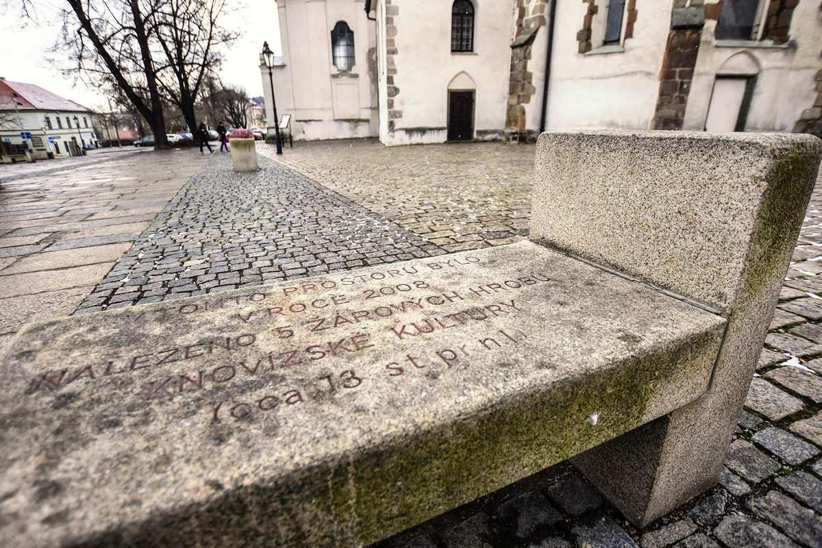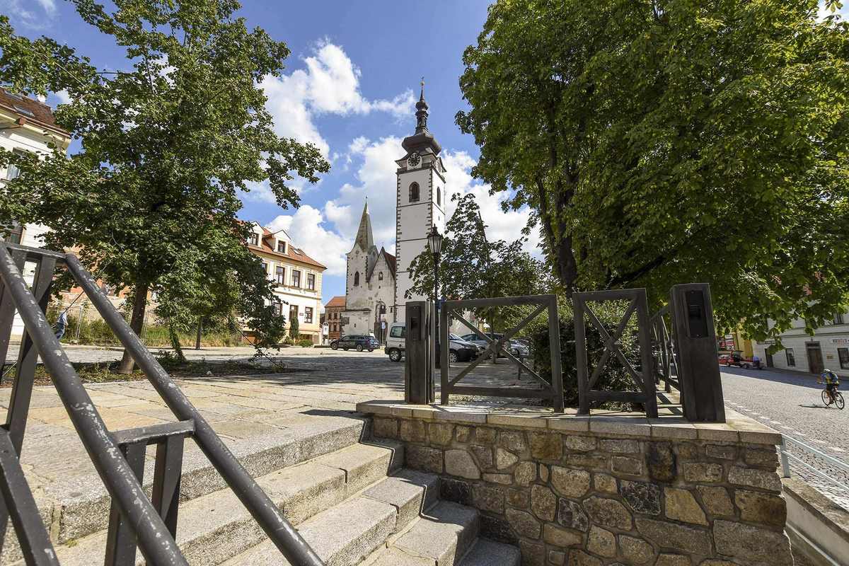 Moderní architektonická koncepce zde ztvárnila bývalou kašnu před hlavním portálem kostela a tzv. bakalářský ostrůvek, jehož šest kamenných lavic jako připomíná původní renesanční školu.