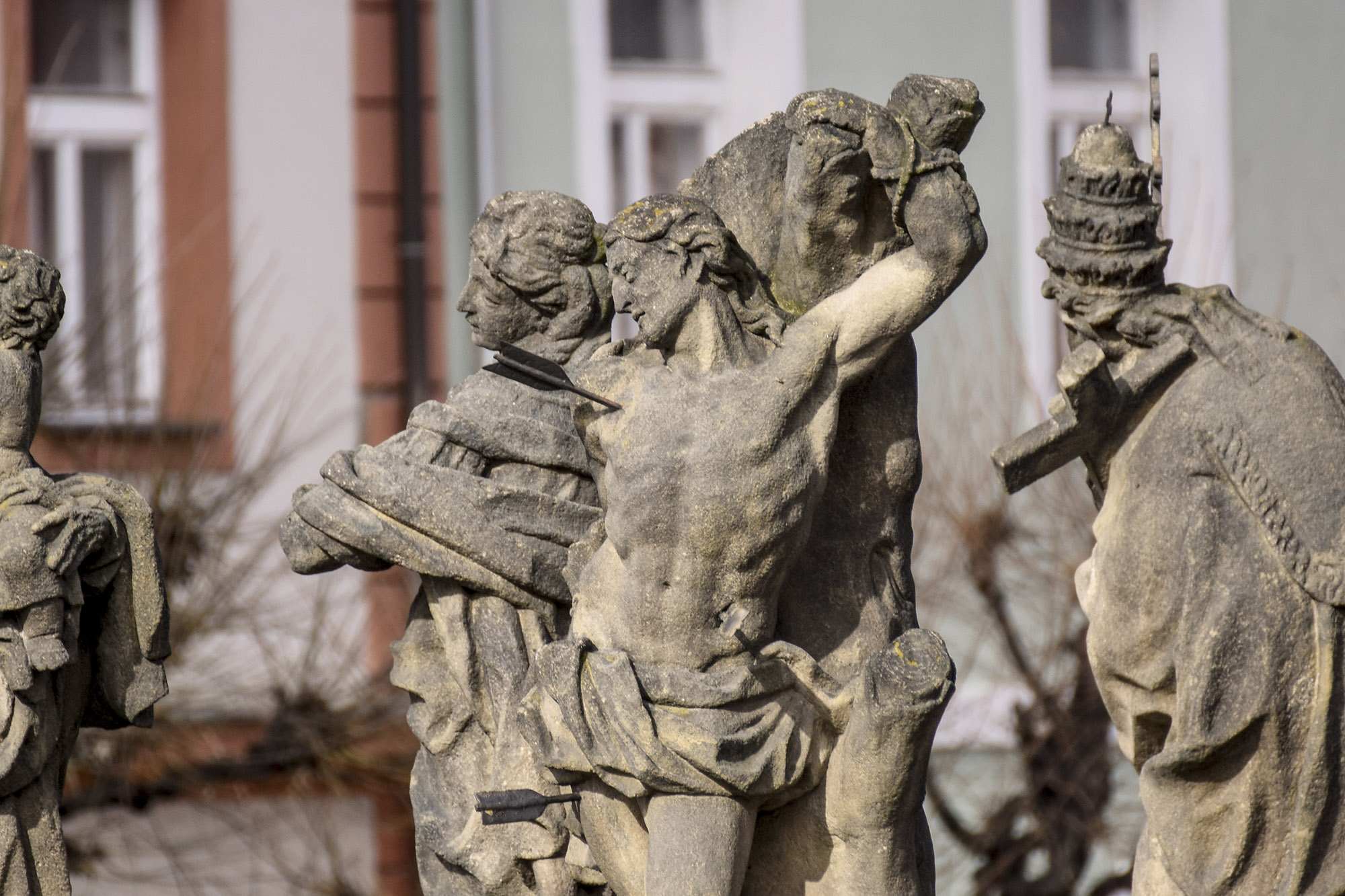 Das architektonische Highlight des Platzes ist zweifellos die Pestsäule (Mariensäule), ein beeindruckendes historisches Denkmal aus dem Jahr 1713. Die Säule erinnert an die große Pestepidemie und trägt auf ihrer Spitze eine Skulptur der Unbefleckten Empfängnis der Jungfrau Maria. Die quadratische Balustrade ist mit Statuen von neun Heiligen geschmückt und verleiht dem Denkmal eine besondere monumentale Bedeutung.