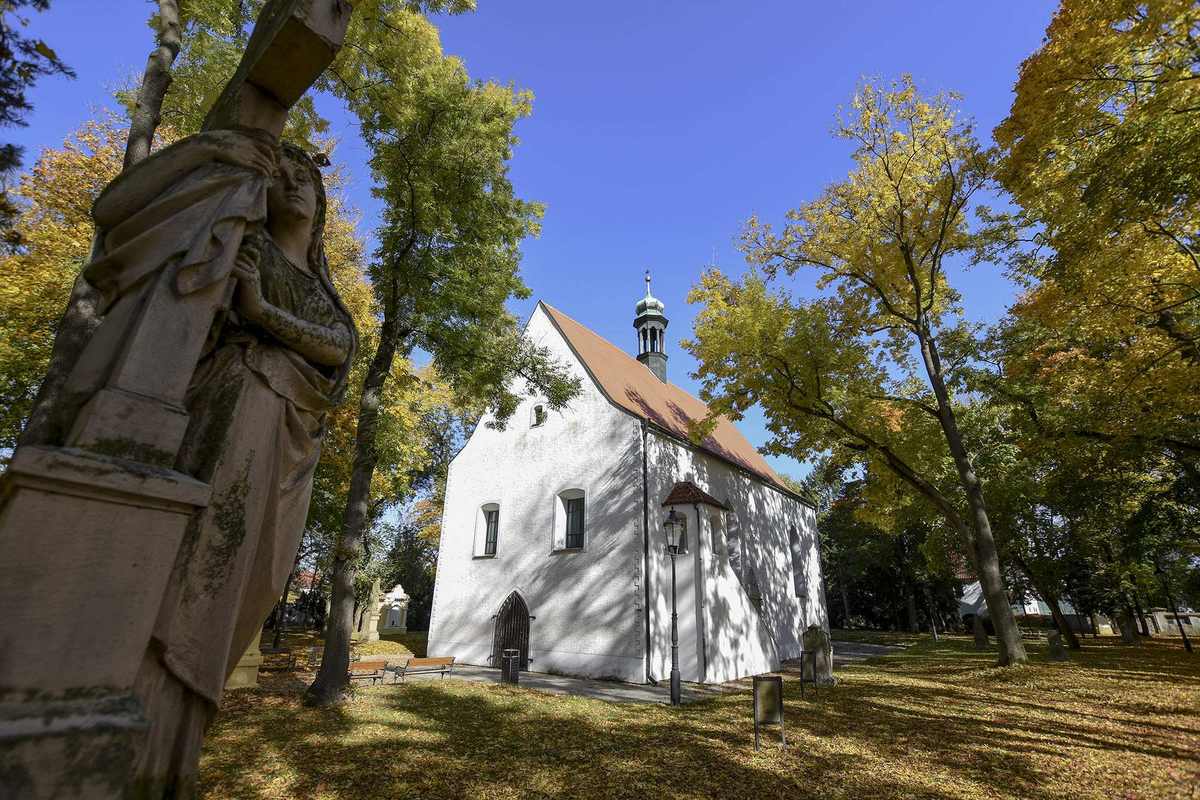 After there was no free space at the original cemetery at the deanery church, a new burial ground was opened in 1549, outside the town walls, on the left bank of the Otava river. The area also includes a Renaissance church of Holy Trinity and a bell tower. This place, too, was on the limit of its capacity in the first half of the 20th century; its function was gradually taken over by the Forest Cemetery. The place has been preserved as a piety park with the graves of regional personalities. Concerts and other events are held in the church today.