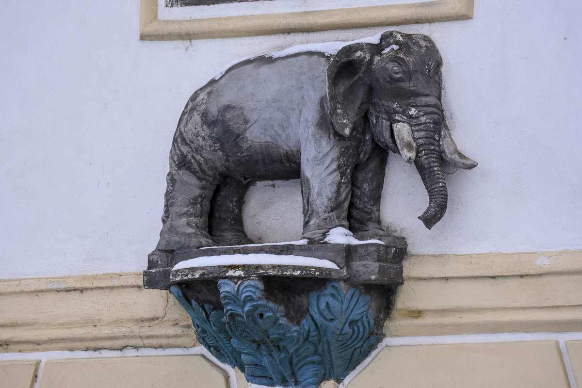 The current building is a classicist burgher house, constructed around 1824. Its name comes from the elephant figure displayed on its façade, one of the many traditional house signs preserved in Písek. Since 1982, the house has been owned by art historian Dr. Stach Černín, who has transformed the first floor into a space filled with artworks from various periods and styles.